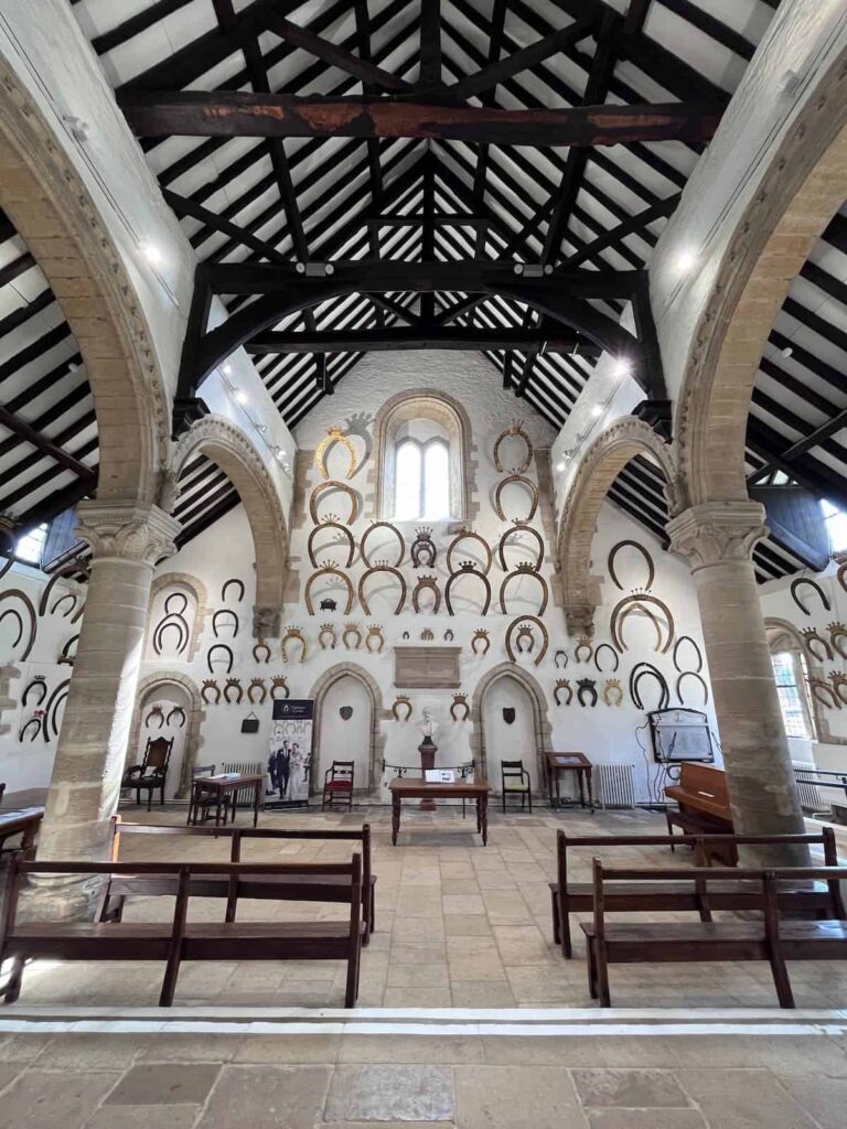 Located in the heart of Oakham, Oakham Castle is a compact but fascinating historic site best known for its unique collection of ceremonial horseshoes displayed throughout the Great Hall, each representing a visiting noble or dignitary over the centuries. Spring is a perfect time to visit, as the mild weather encourages leisurely exploration of the castle and surrounding town.